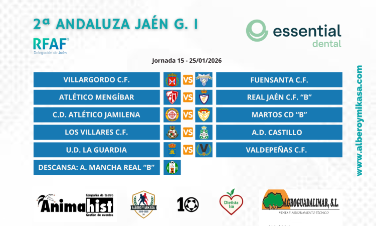 PREVIA J. 15 | Pedro Expósito.- El grupo uno de Segunda Andaluza Jaén dejará cinco partidos de gran nivel para la jornada número quince. Arriba se darán duelos...